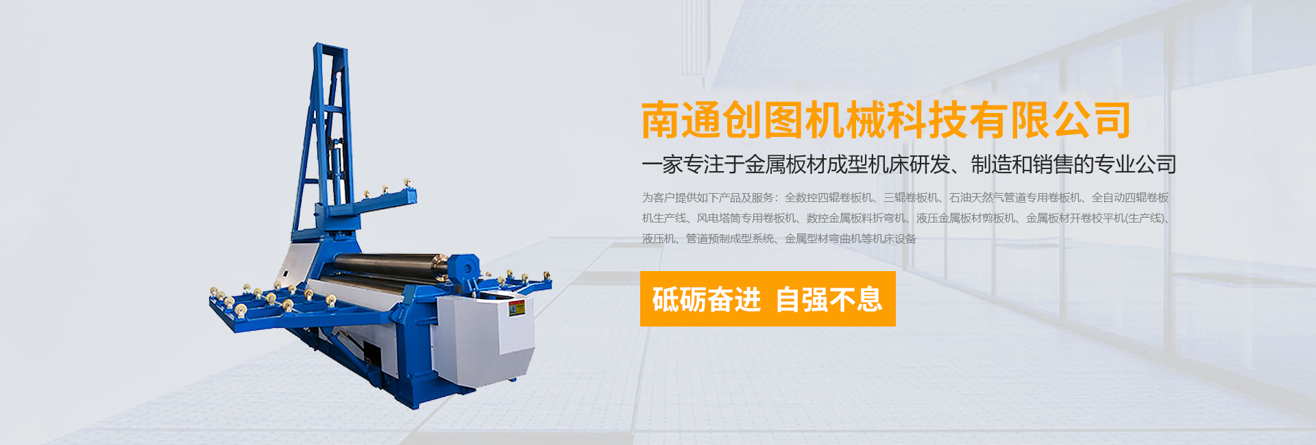 数控折弯机,剪板机,刨槽机,全数控四辊卷板机、三辊卷板机、石油天然气管道专用卷板机、全自动四辊卷板机生产线、风电塔筒专用卷板机、金属板材开卷校平机(生产线)、液压机、管道预制成型系统、金属型材弯曲机等机床设备,公司以精湛的设计能力,雄厚的加工制造能力,完善的售后服务能力,产品畅销国内20多个省、直辖市,并远销德国、阿根廷、俄罗斯、印尼、伊朗等30多个国家和地区。