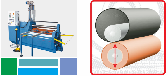 二辊卷板机为我公司生产的技术产品。其一辊为钢辊,另一辊为钢辊芯外包弹性层,板材置于两辊间并调整其间距,使其接触——加压——胶辊变形,板材随之局部变形,驱动两辊旋转,使板材连续弯卷成型。板料一次卷制即可加工成型,无明显直边,卷圆精度高。是高效、高精度、高度自动化的卷板加工设备。